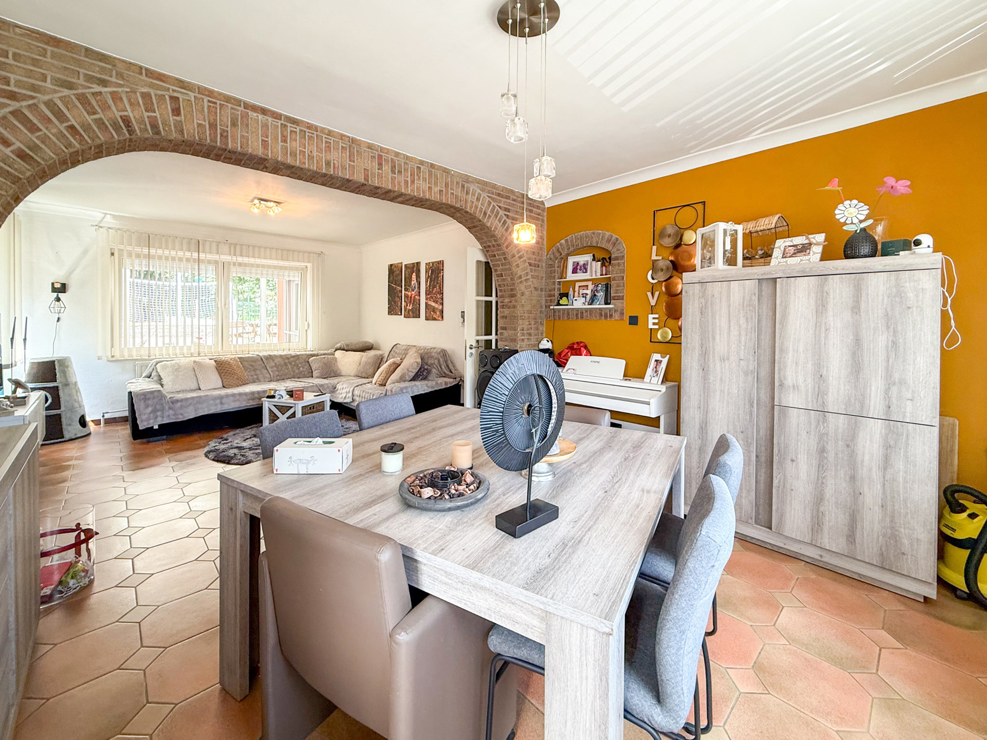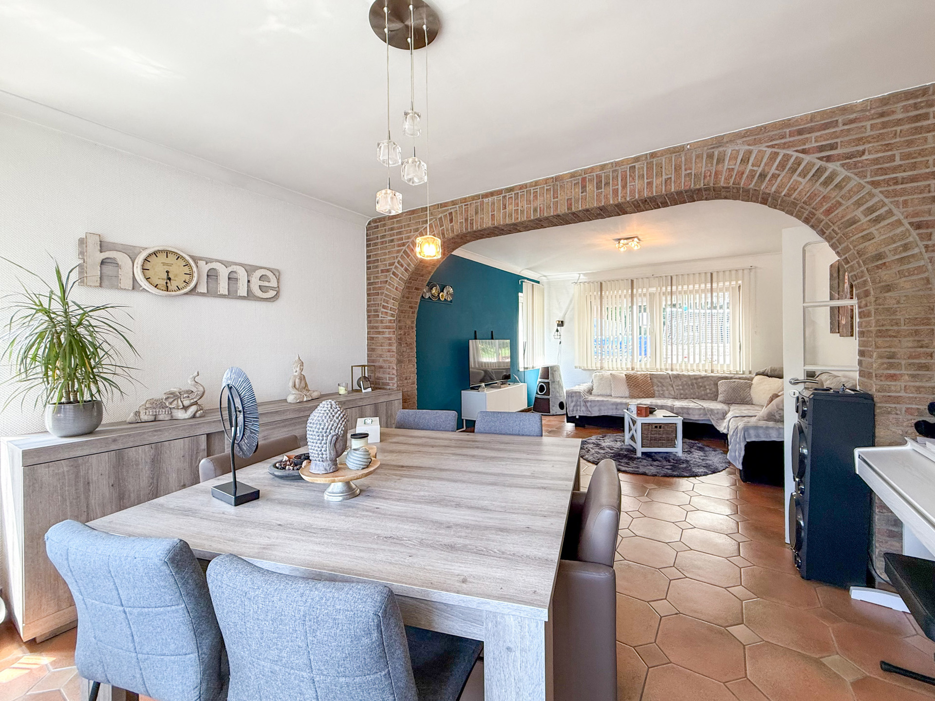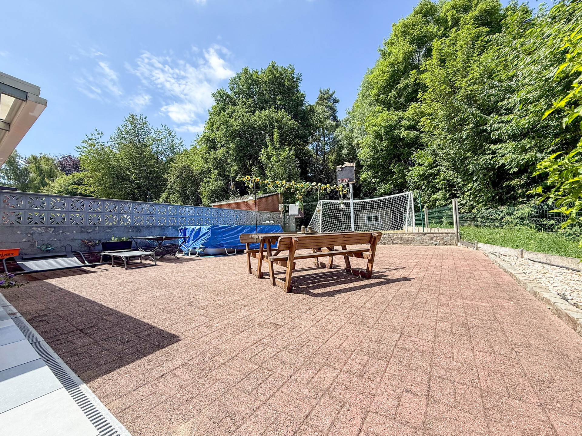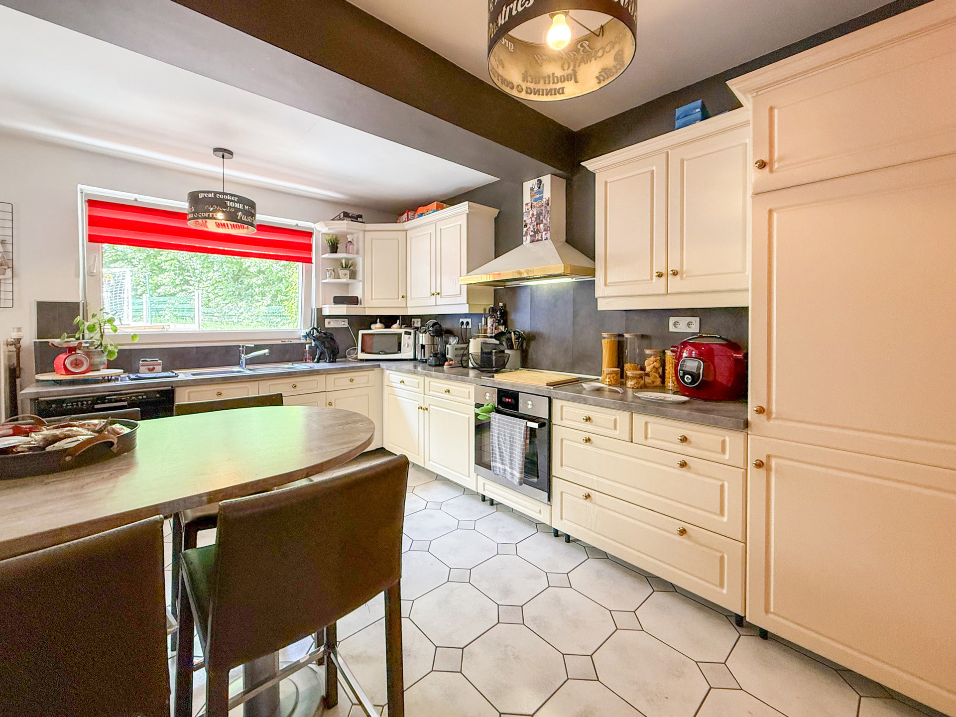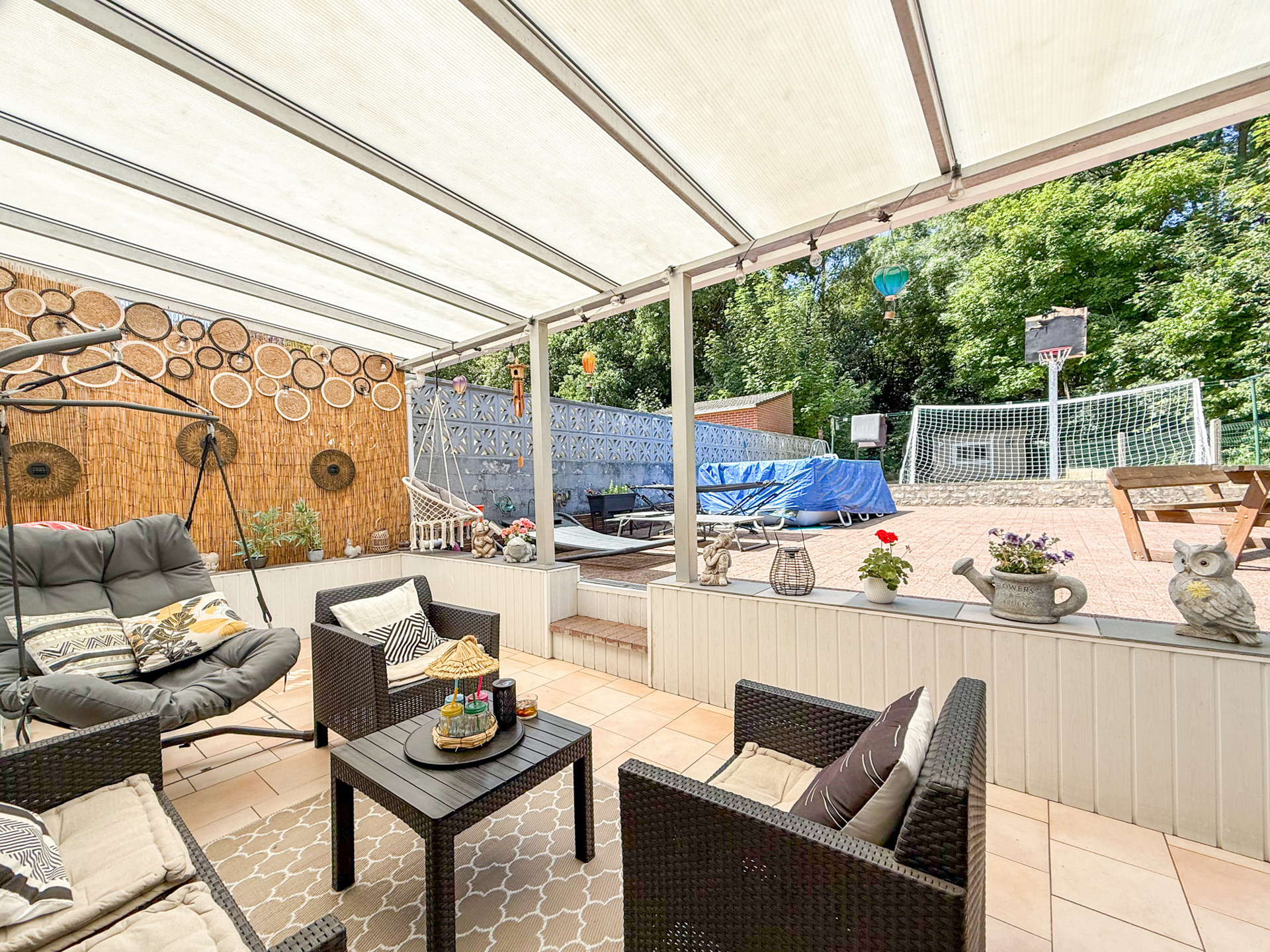 Venez visiter cette magnifique maison 4 façades avec jardin et terrasses (une couverte et une ouverte) et garage! Celle-ci se compose au rez-de-chaussée d'un hall d'entrée, d'un living composé d'une salle à manger et d'un salon, d'une cuisine hyper-équipée avec coin repas, et d'une salle de bain. A l'étage, hall de nuit avec 3 chambres de minimum 10m², et deux petits greniers de rangement dont un pourrait être aménagé en WC. Grenier de rangement accessible par une trappe dans le hall de nuit. Au sous-sols, espace de rangement, buanderie, chaufferie et garage pour voiture avec volet électrique. A l'extérieur, terrasse couverte par une pergola, terrasse ouverte de 80 m² et jardin. Possibilité de faire le tour de la maison grâce aux passages latéraux. Chauffage central au mazout, électricité conforme jusqu'en 2042, châssis PVC DV avec volets, RC net : 736 €. Possibilité de bénéficier de la réduction des droits d'enregistrement à 3% ! Prix souhaité : 299.000 €. Par soucis de transparence vis-à-vis de nos candidats-acquéreurs, nous ne procédons pas à des enchères. Informations et visites : 071/312.312