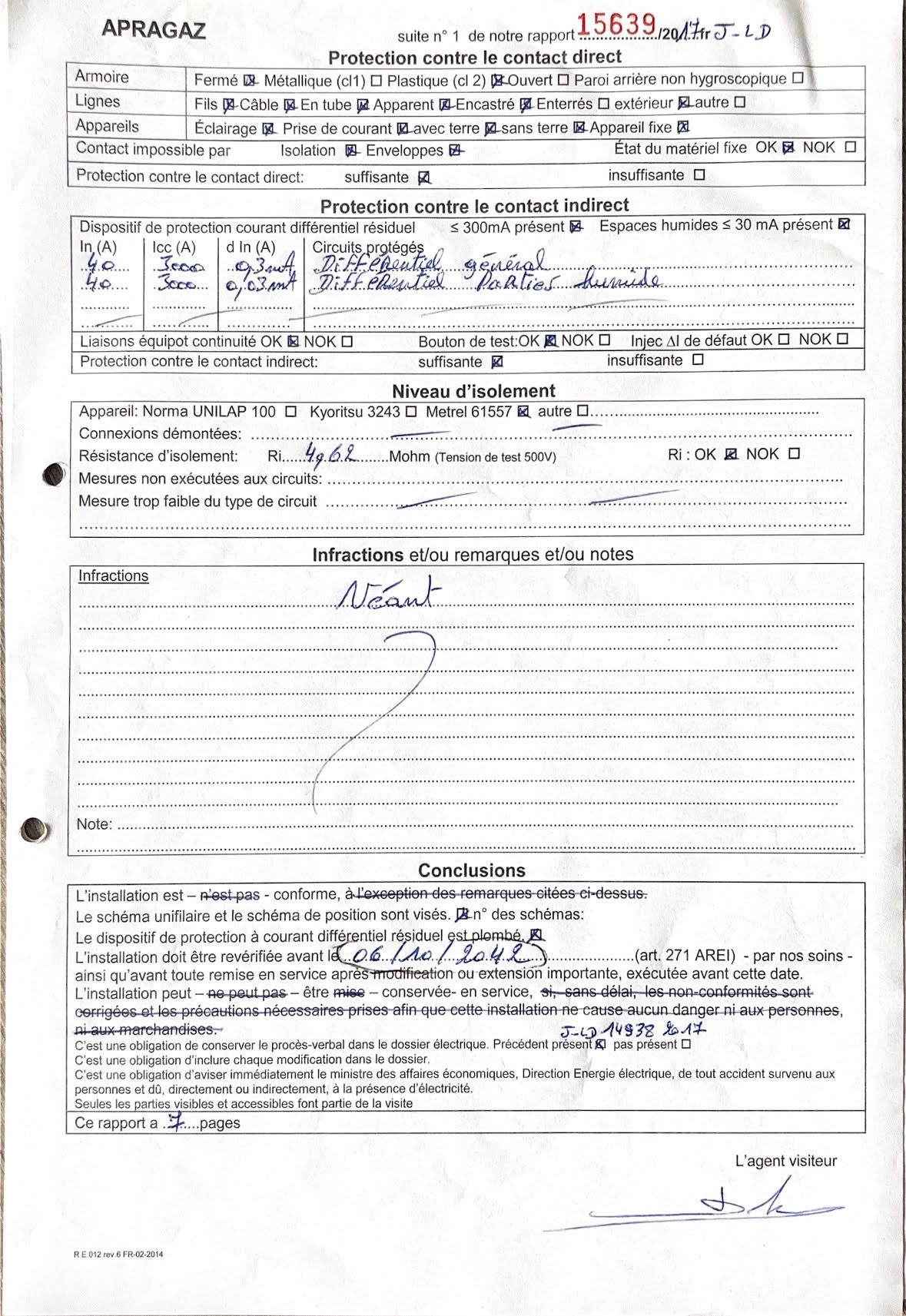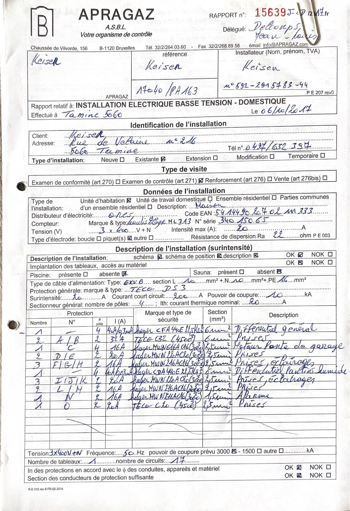 | Certificat d'électricité (oui/non) | oui, conforme |
